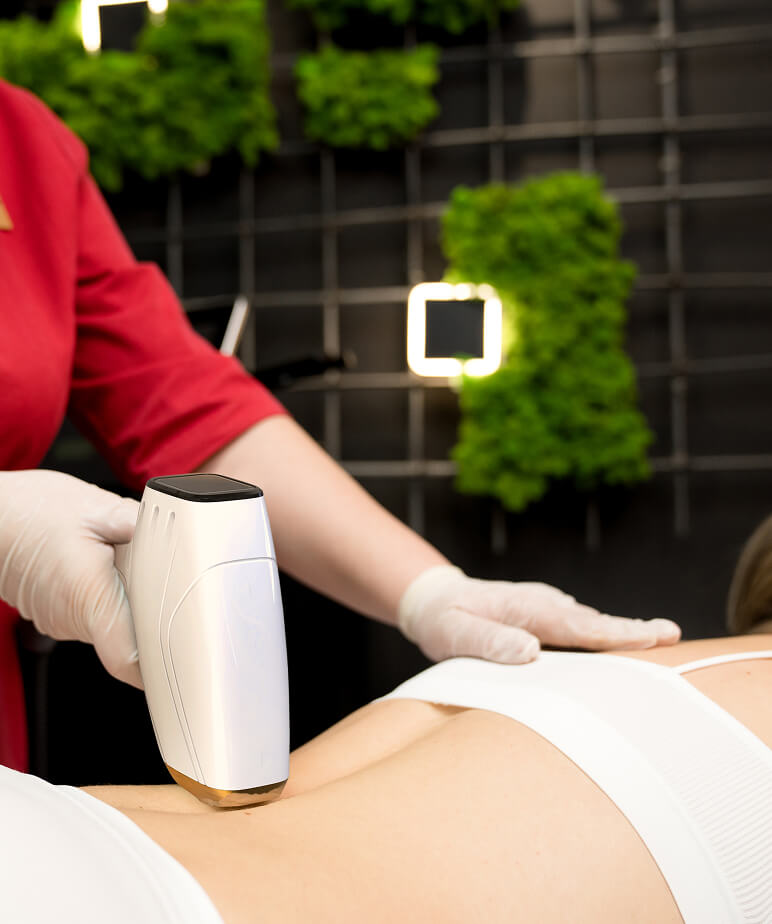 Эффективность лазерного удаления растительности в области поясницы заключается в том, что луковицы волос, находящиеся под кожей, разрушаются и впоследствии не восстанавливаются. Поэтому волоски, лишившиеся питания, со временем выпадают.