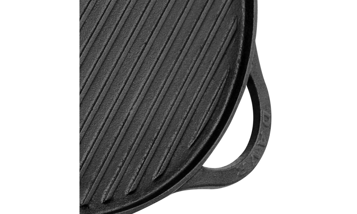 Diametri 430 mm bo‘lgan dumaloq cho‘yan plita qovurish, pishirish va issiq taomlarni tortish uchun mo‘ljallangan. Mahsulot yuqori sifatli cho‘yandan tayyorlangan bo‘lib, u butun yuza bo‘ylab bir tekis qizishni va haroratning uzoq vaqt saqlanishini ta’minlaydi. Plato go‘sht, baliq, sabzavot va milliy taomlarni tayyorlash uchun mos keladi. Massiv tuzilishi tufayli mahsulotlar bir tekis qovuriladi, shiraliligi va ta’mi saqlanib qoladi. Dumaloq shaklni manqalda, o‘choqda va ochiq olovda ishlatish, shuningdek, tayyor taomlarni ta’sirli taqdim etish uchun qulay. Plato yuqori haroratga chidamli bo‘lib, uy va kasbiy sharoitlarda uzoq muddat foydalanishga mo‘ljallangan.