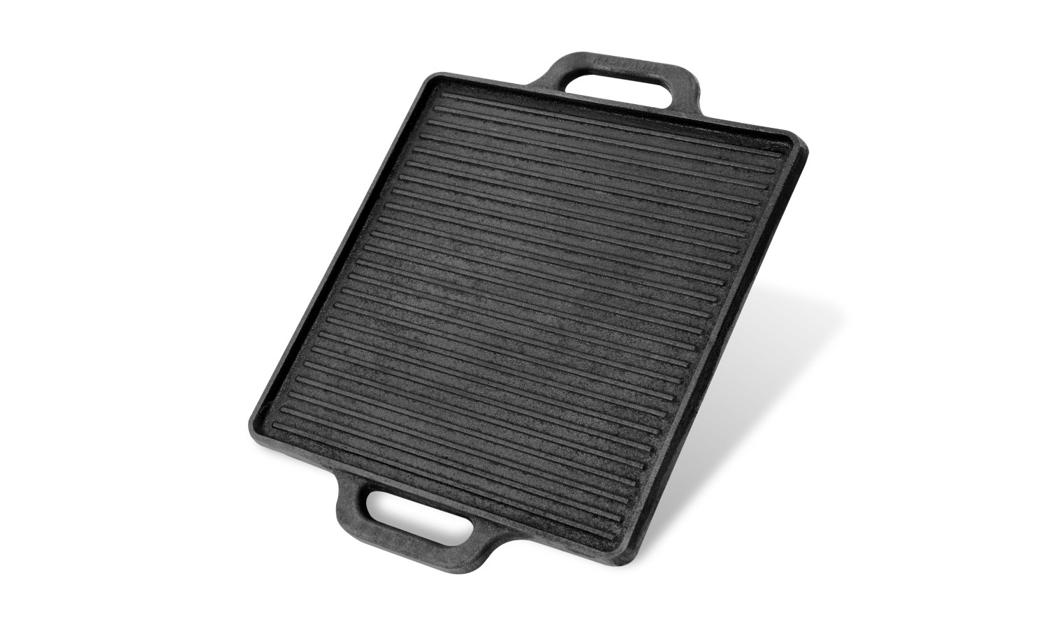 500×370 mm o‘lchamdagi to‘rtburchak shaklidagi cho‘yan plita issiq taomlarni qovurish, pishirish va xizmat ko‘rsatish uchun mo‘ljallangan. Mahsulot mustahkam cho‘yandan tayyorlangan bo‘lib, u issiqlikni butun yuzaga bir tekis tarqatadi va uzoq vaqt davomida haroratni saqlab, barqaror tayyorlash natijasini ta’minlaydi. Plato go‘sht, sabzavotlar, yarim tayyor mahsulotlar va sharq taomlari uchun mos keladi. Konstruksiya yuqori haroratga chidamli bo‘lib, maishiy va kasbiy sharoitlarda uzoq muddatli foydalanishga mo‘ljallangan. To‘g‘ri to‘rtburchak shakli manqal, o‘choq yoki plitada joylashtirish qulayligini ta’minlaydi va bir vaqtning o‘zida bir nechta mahsulotlar bilan ishlash imkonini beradi.